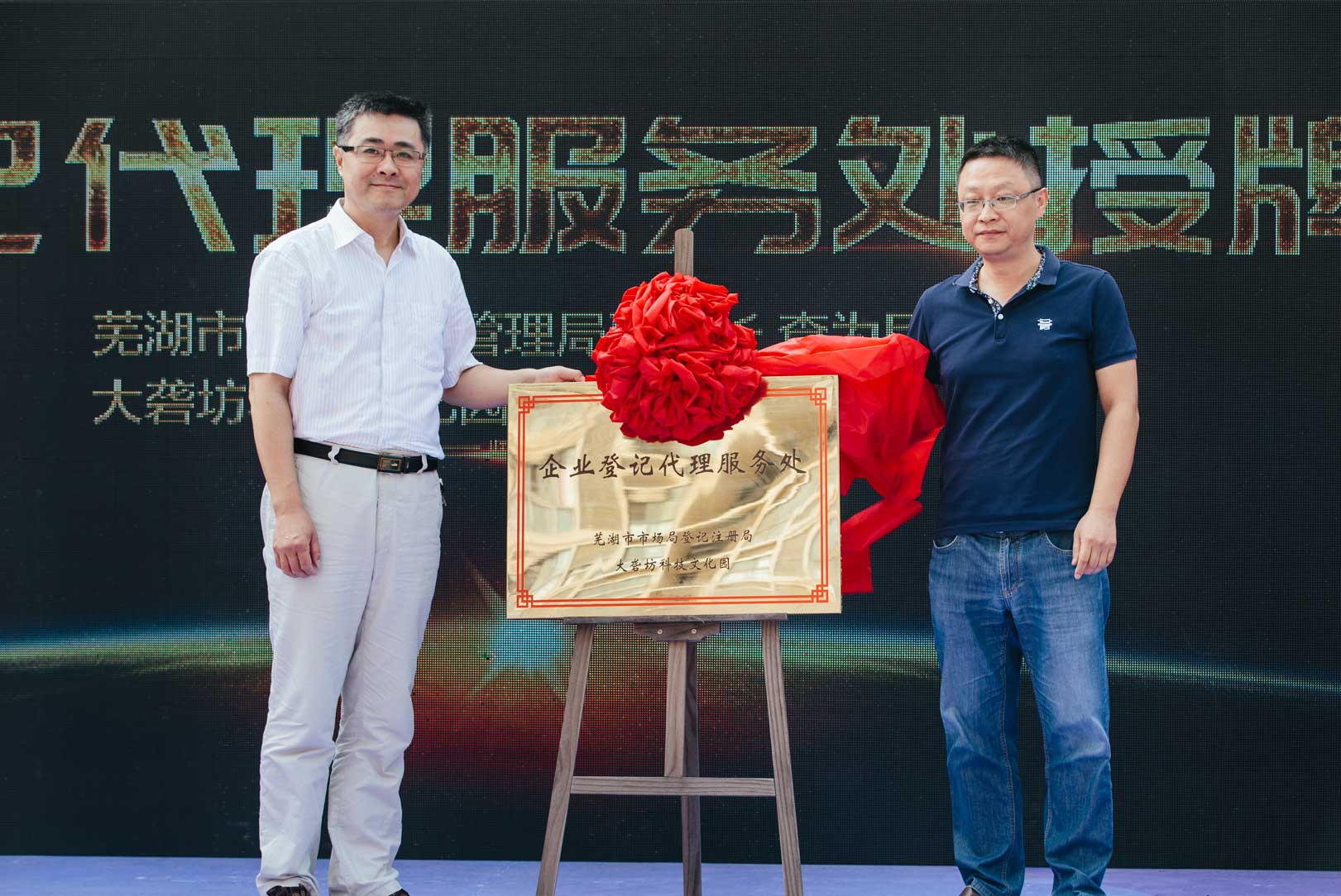 作為工業設計集聚產業地,為進一步支持相關領域創新創業發展,本次典禮舉辦了一系列授牌活動,安徽工程大學藝術學院創業實踐基地、大礱坊企業登記代理服務處、MatchU碼尚全球首家信息消費體驗中心先后在園區揭牌,將本次活動進一步推向高潮。