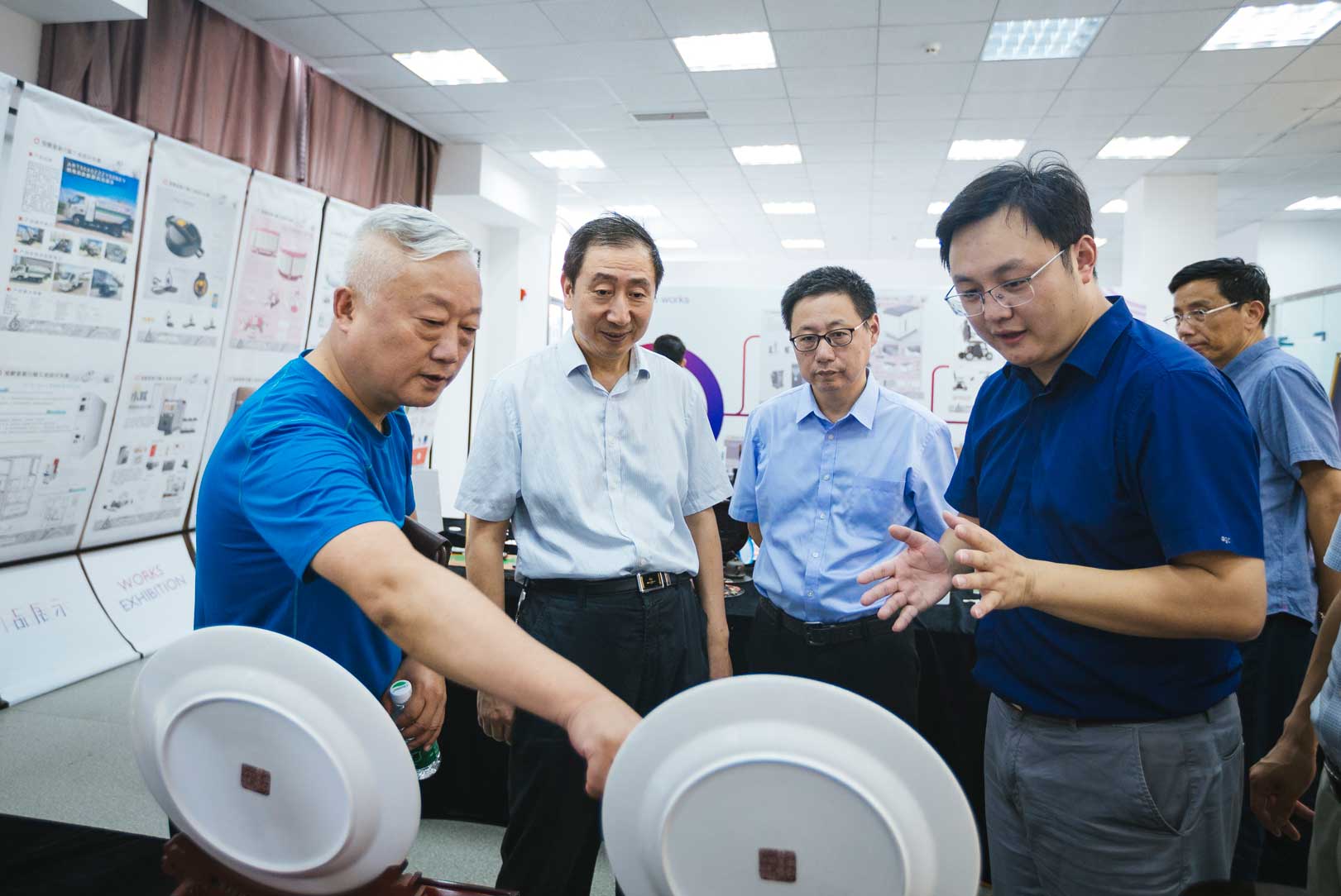 17日,大賽舉行了專家評審會議,安工程黃凱書記、湖南大學譚浩副院長、合工大王成勇教授、上海純米產品設計總監黃仲健、安工程俞葵教授、協同創新設計研究院總經理卞國琛、大礱坊科技文化園昝銳作為評審專家,對初選后進入決賽的30組選手進行了現場提問答辯與交流,查看了部分項目的實際產品,并依據評分標準對相關作品評判商議。